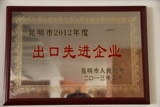 昆明市2012年度出口先進(jìn)企業(yè)
