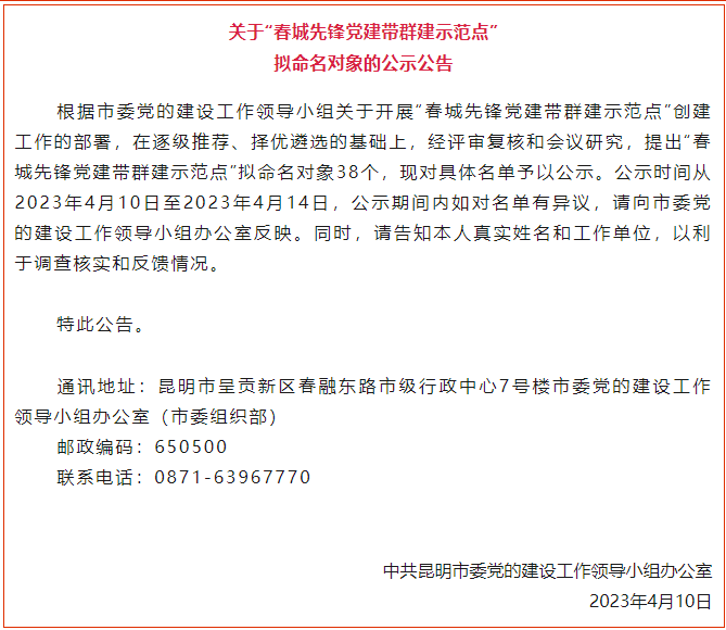 【春城先鋒】關(guān)于“春城先鋒黨建帶群建示范點”擬命名對象的公示公告