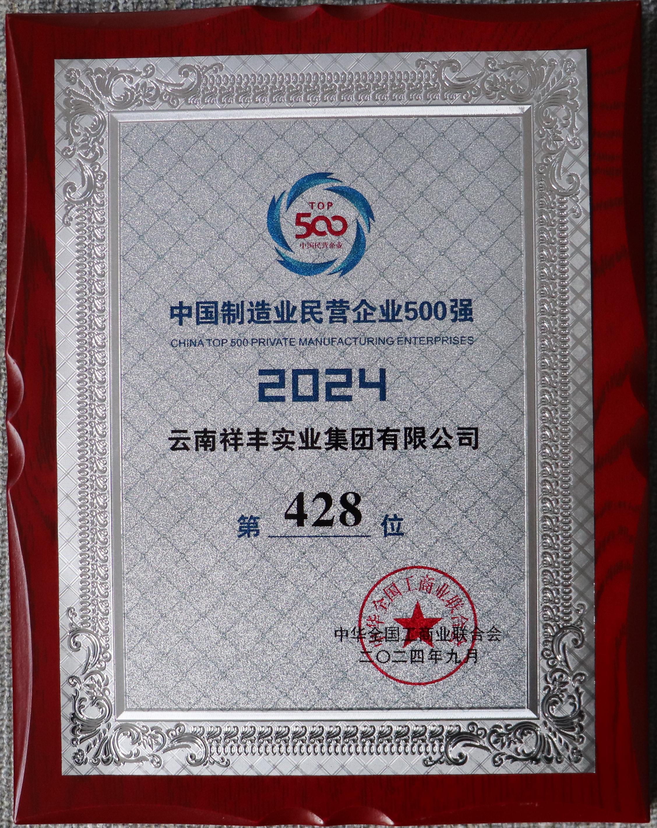 2024中國(guó)制造業(yè)民營(yíng)企業(yè)500強(qiáng)第428位